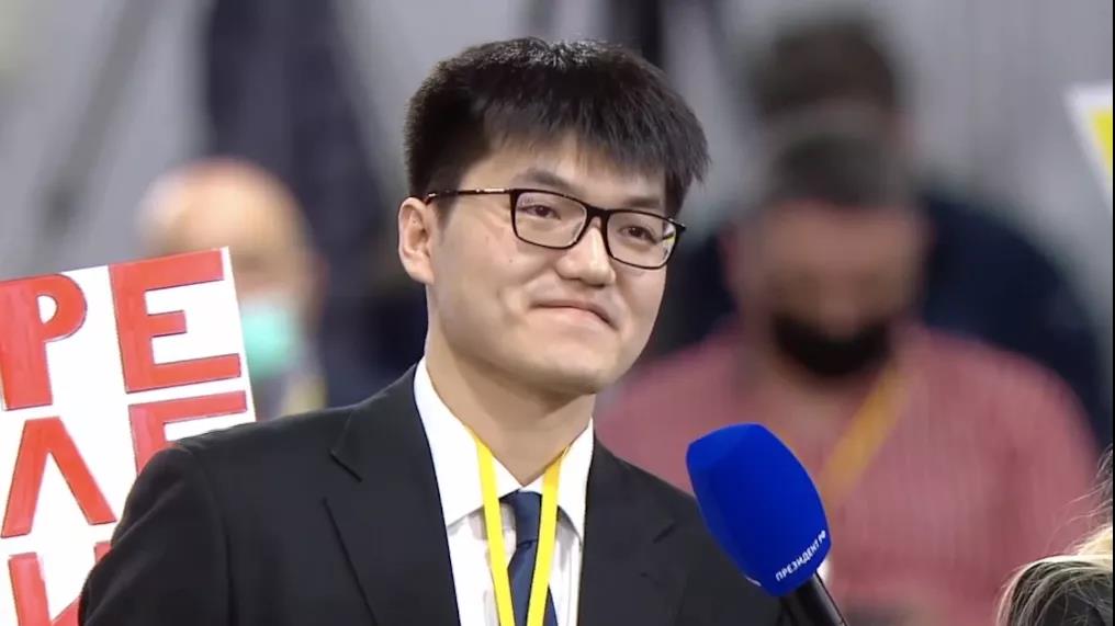 12月23日,新华社记者李奥在记者会现场向俄罗斯总统普京提问。(视频截图)